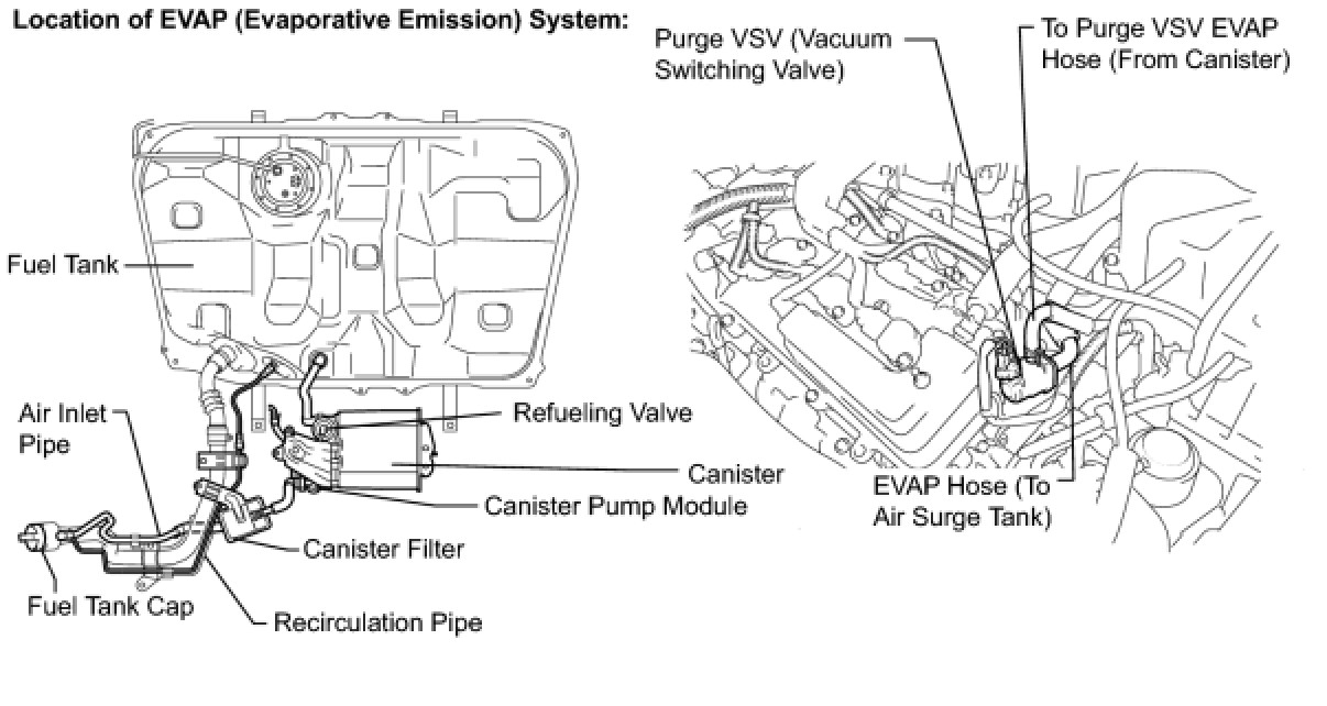 The leak detection pump creates negative pressure (vacuum) in the EVAP system and the pressure is measured. Finally, the ECM monitors for leaks from the EVAP system, and malfunctions in both the canister pump module and purge VSV, based on the EVAP pressure.