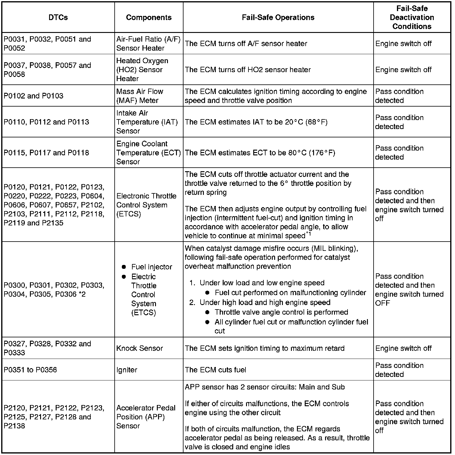 *2: Misfire related fail-safe operations occur when catalyst overheat malfunction occur.