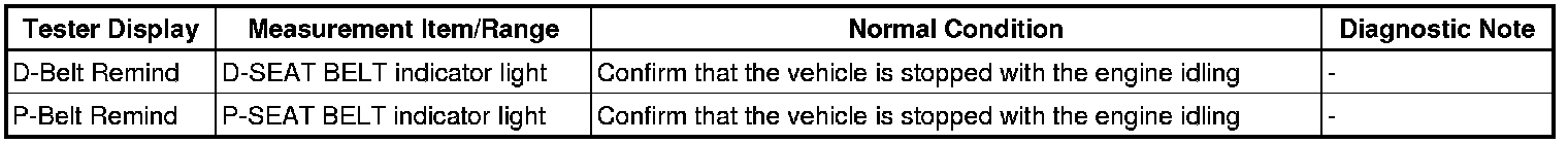 SEAT BELT: SEAT BELT WARNING SYSTEM: DATA LIST / ACTIVE TEST