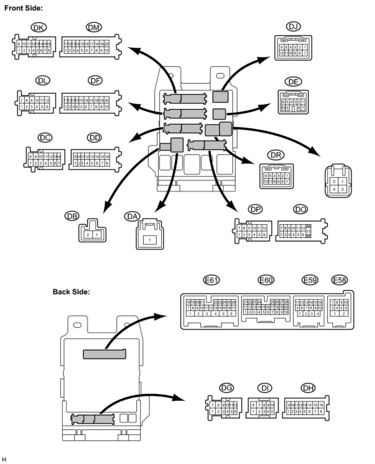 (a) Disconnect the DR, DA, DD, DF, E60, E61 and E59 ECU connectors.