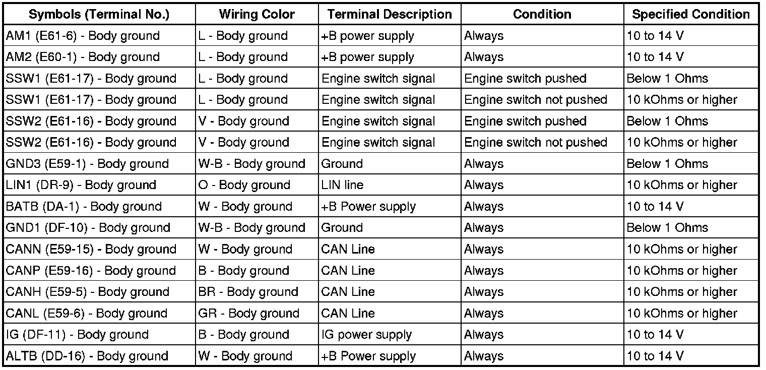 2GR-FE STARTING: SMART ACCESS SYSTEM WITH PUSH-BUTTON START: TERMINALS OF ECU
