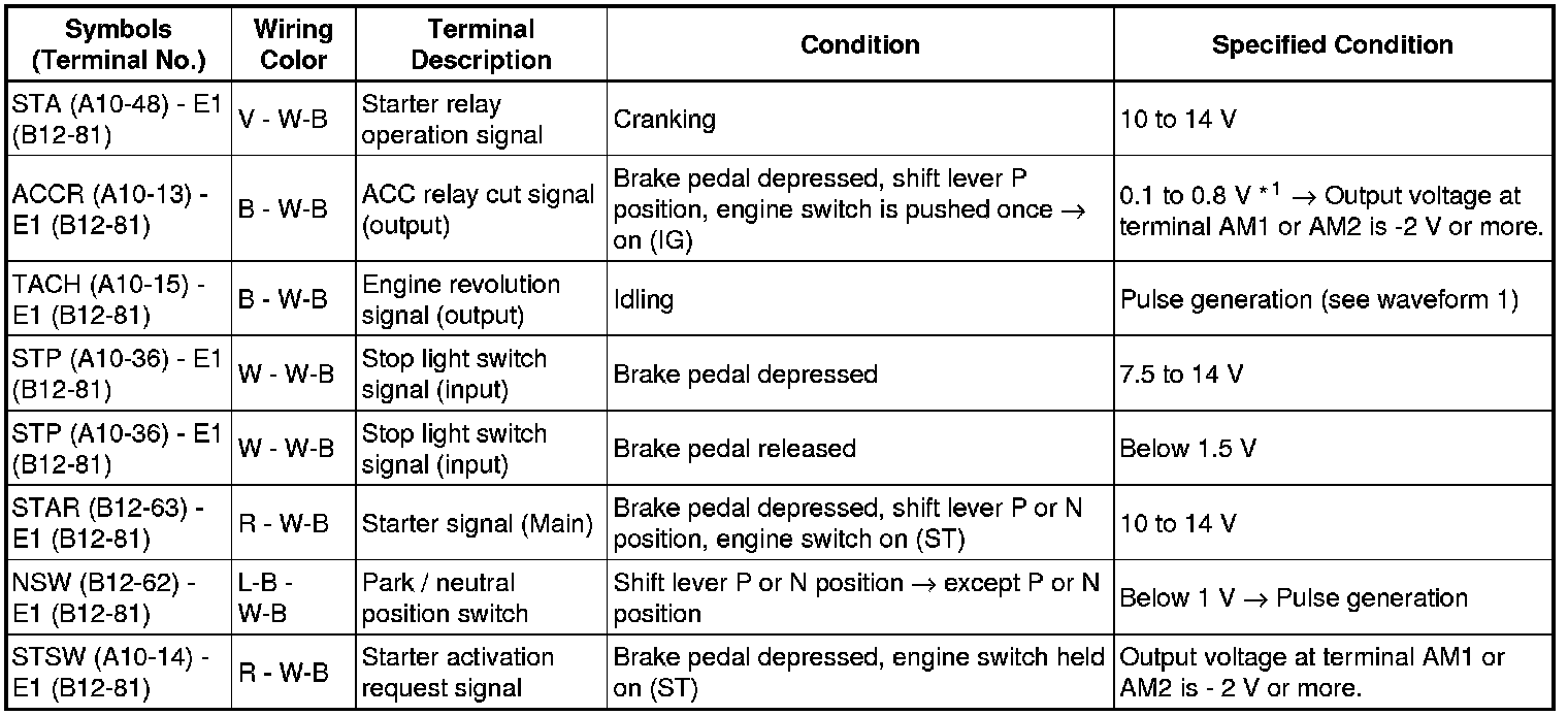 HINT: *1: Voltage is output only when the engine is cranking.