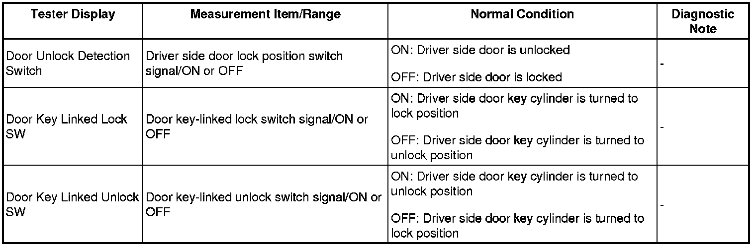 DOOR LOCK: POWER DOOR LOCK CONTROL SYSTEM: DATA LIST / ACTIVE TEST