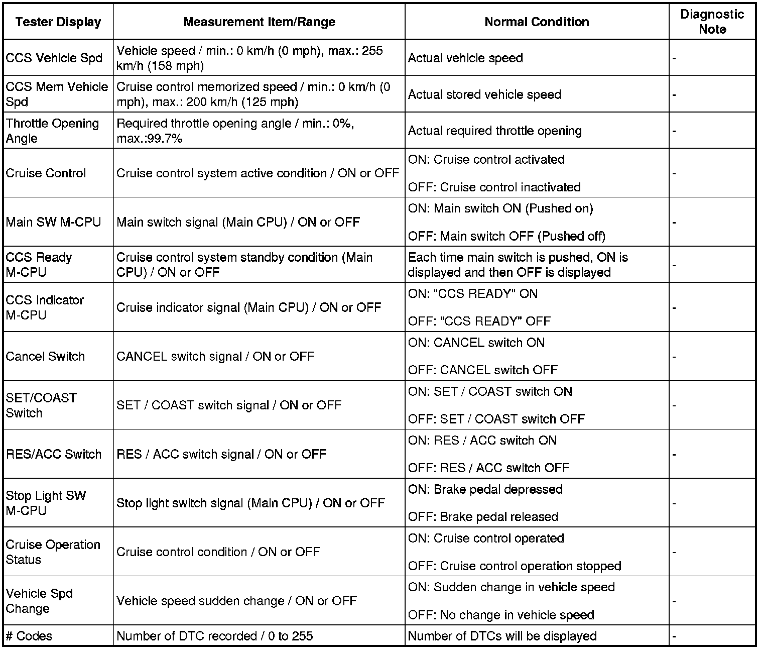 CRUISE CONTROL: CRUISE CONTROL SYSTEM: DATA LIST / ACTIVE TEST