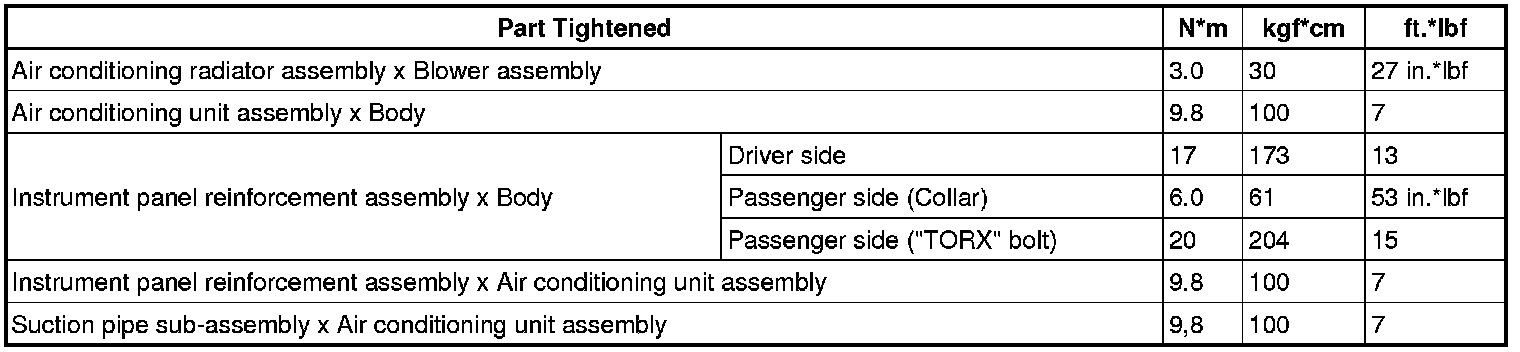 SERVICE SPECIFICATIONS: AIR CONDITIONING: TORQUE SPECIFICATIONS