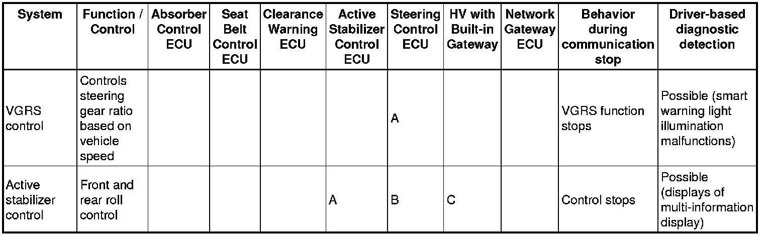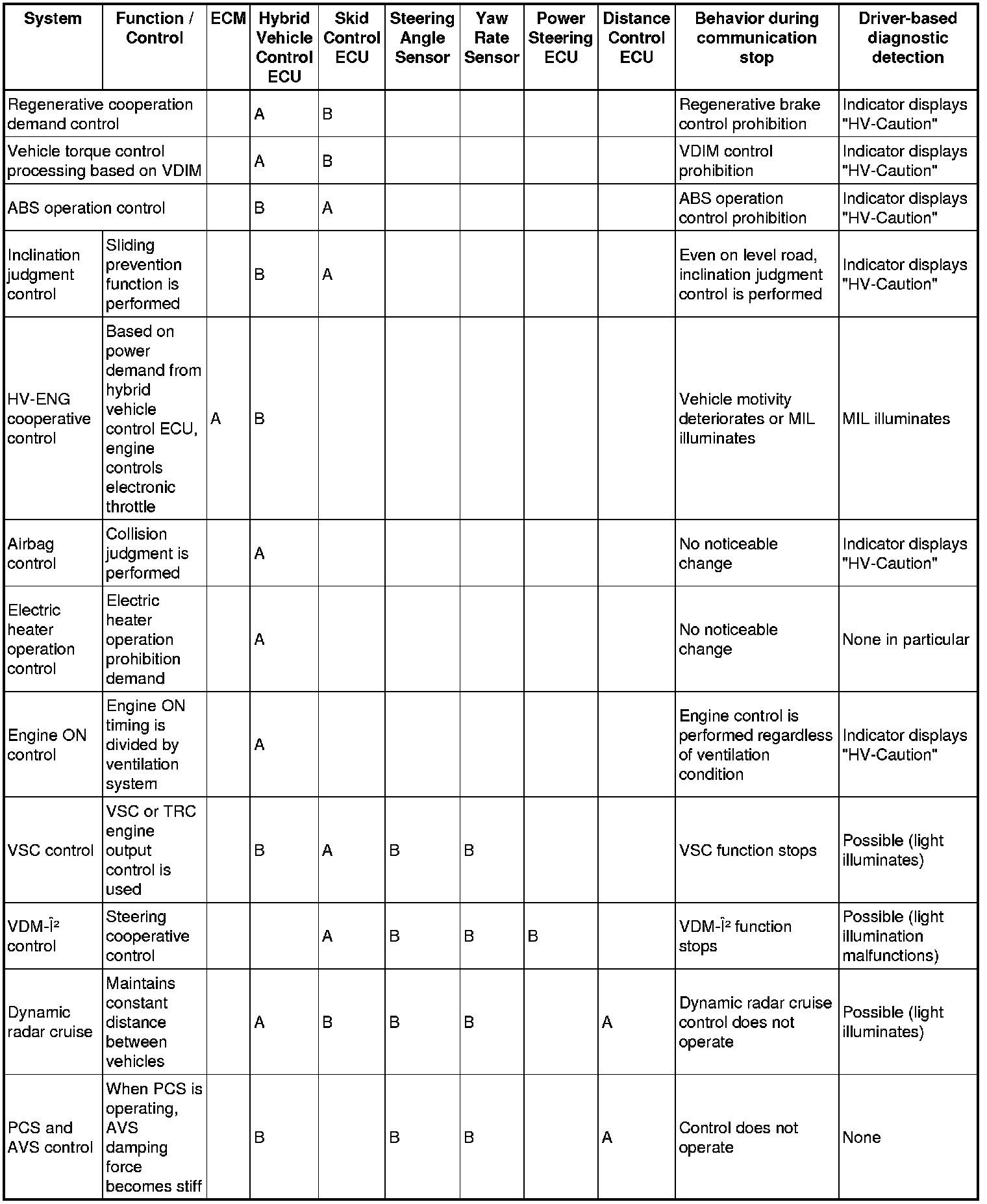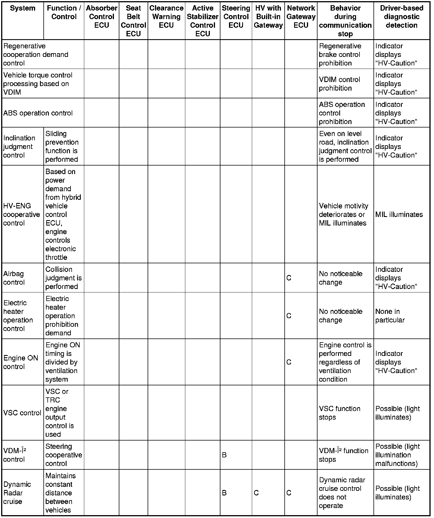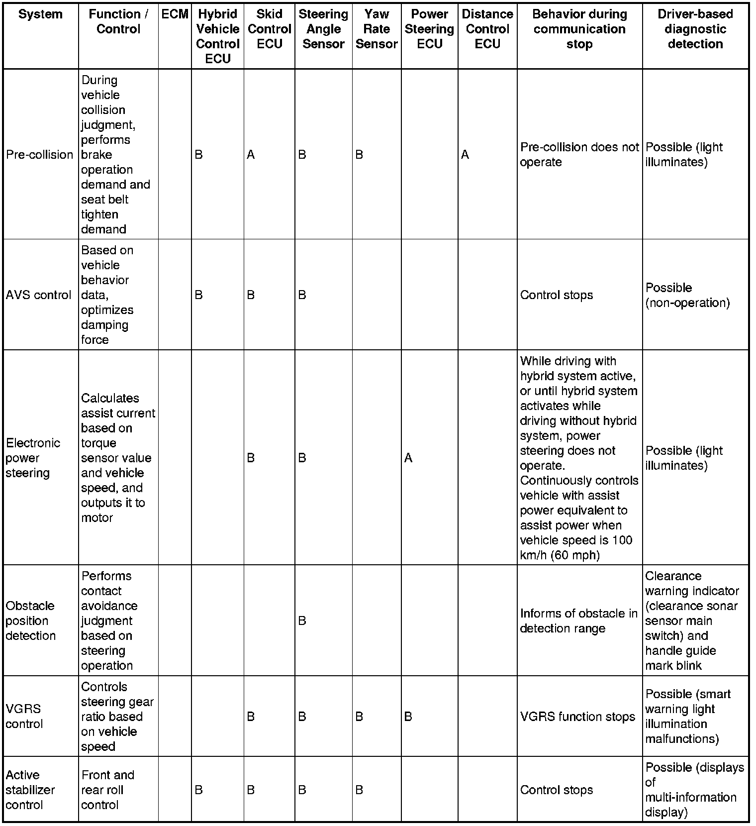 (b) Effects on each system when communication is impossible. (For further details, refer to each system.)