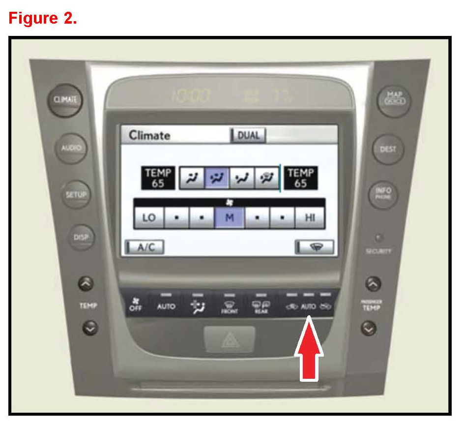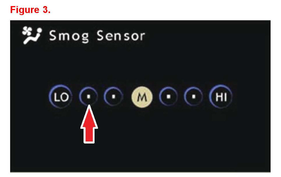 Press and hold the Outside Air I Recirculated Mode button on the HVAC unit until the smog sensor screen appears.