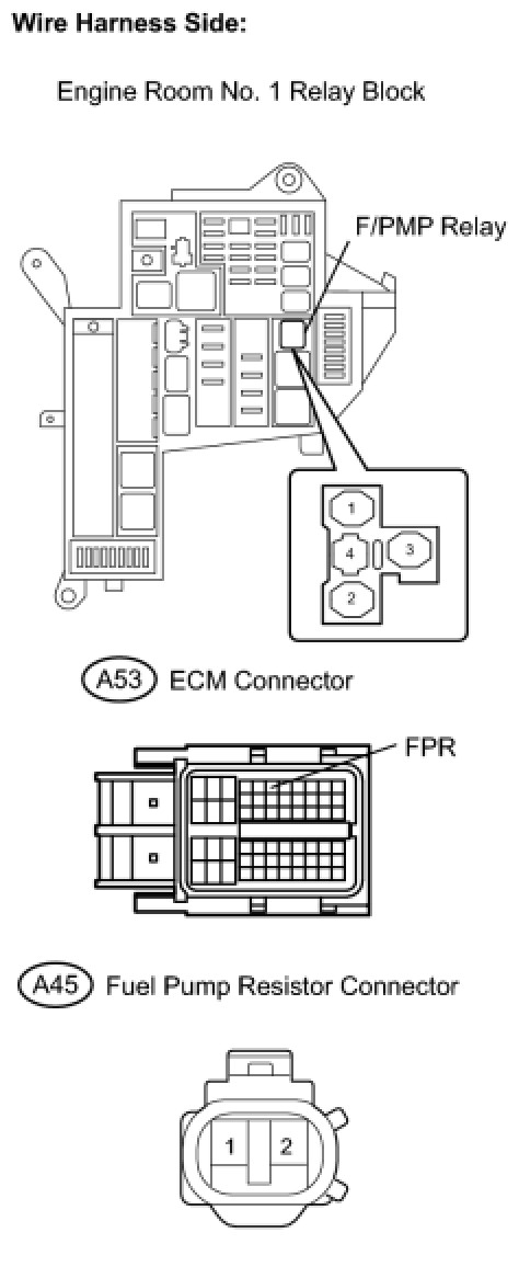 CHECK HARNESS AND CONNECTOR (F/PMP RELAY - FUEL PUMP, FUEL PUMP RESISTOR - FUEL PUMP, FUEL PUMP - BODY GROUND)