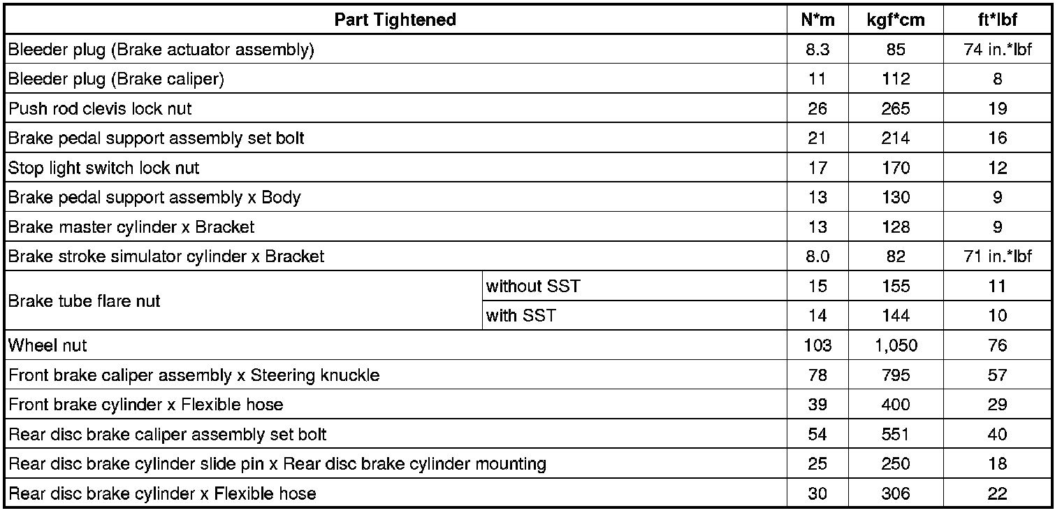 SERVICE SPECIFICATIONS: BRAKE: TORQUE SPECIFICATIONS