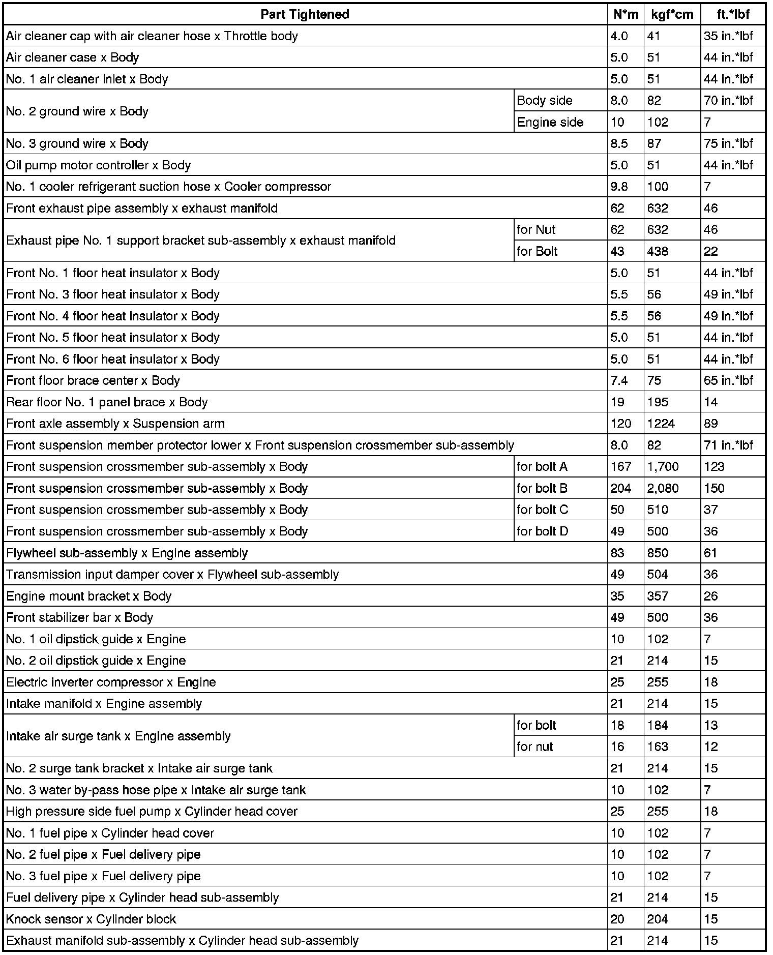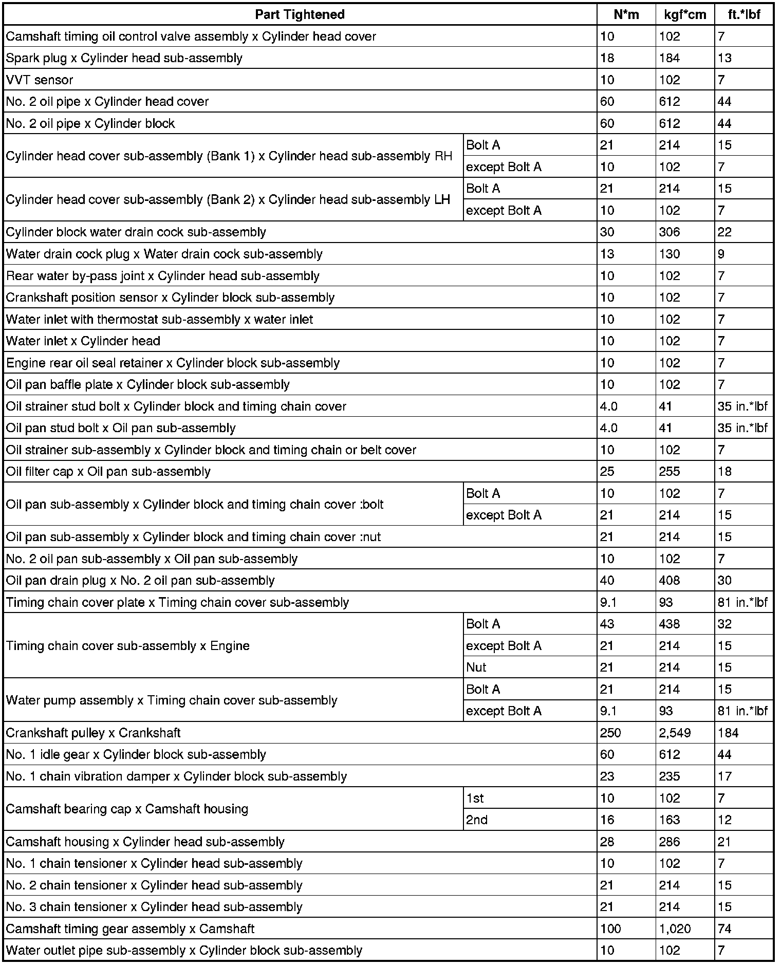 SERVICE SPECIFICATIONS: 2GR-FSE ENGINE MECHANICAL: TORQUE SPECIFICATIONS