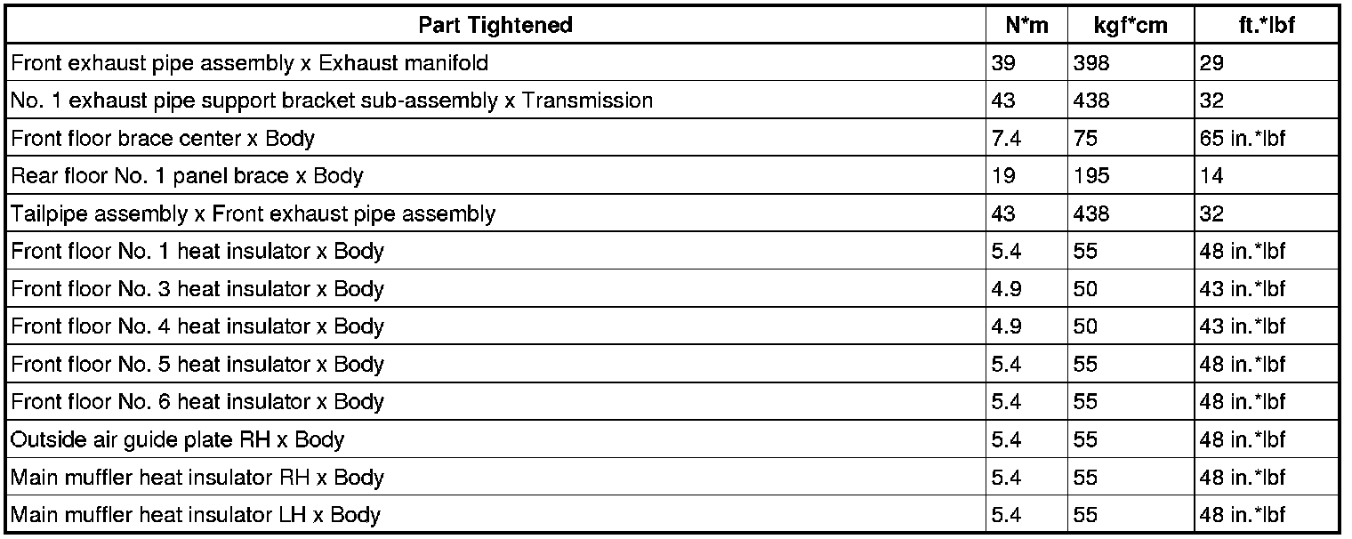 SERVICE SPECIFICATIONS: 2GR-FSE EXHAUST: TORQUE SPECIFICATIONS