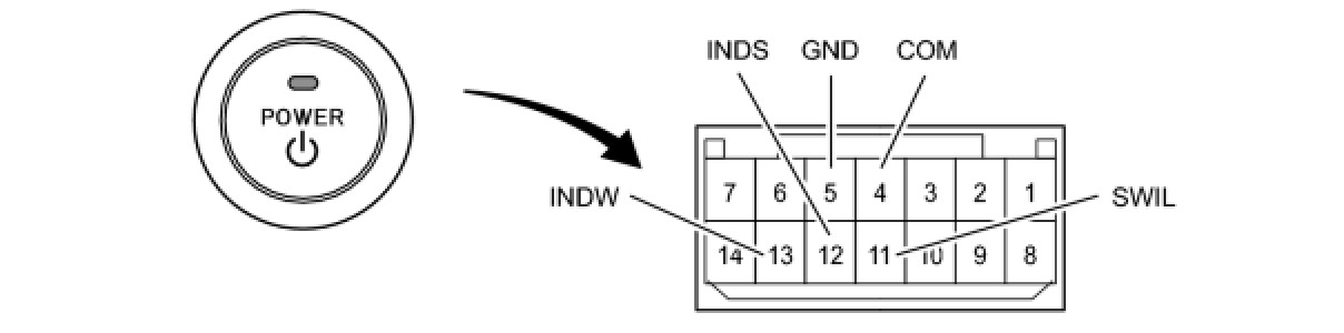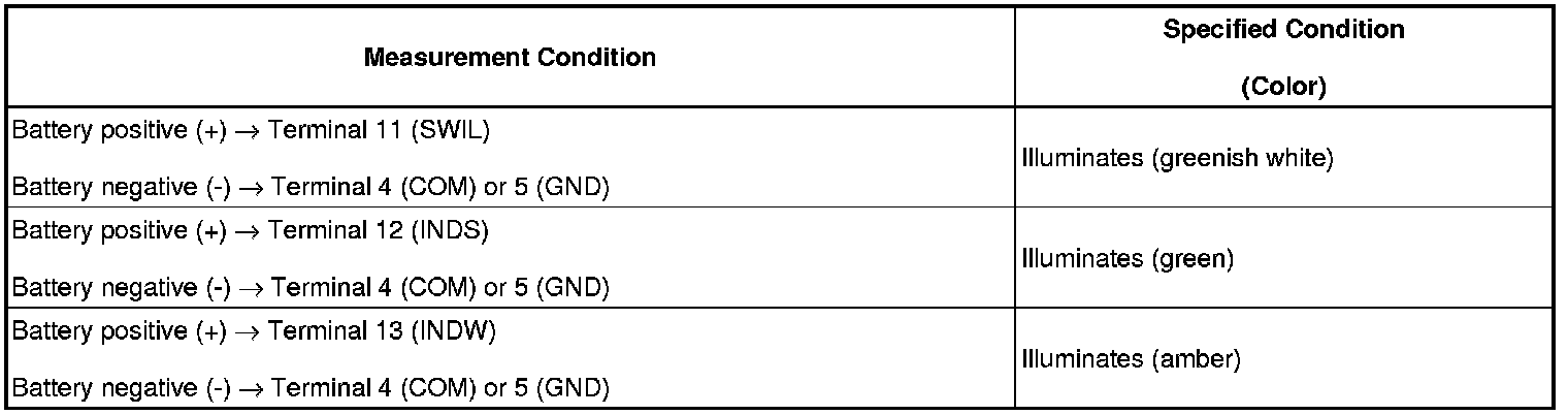 (b) Apply battery voltage between the terminals of the switch, and check the illumination condition of the switch.