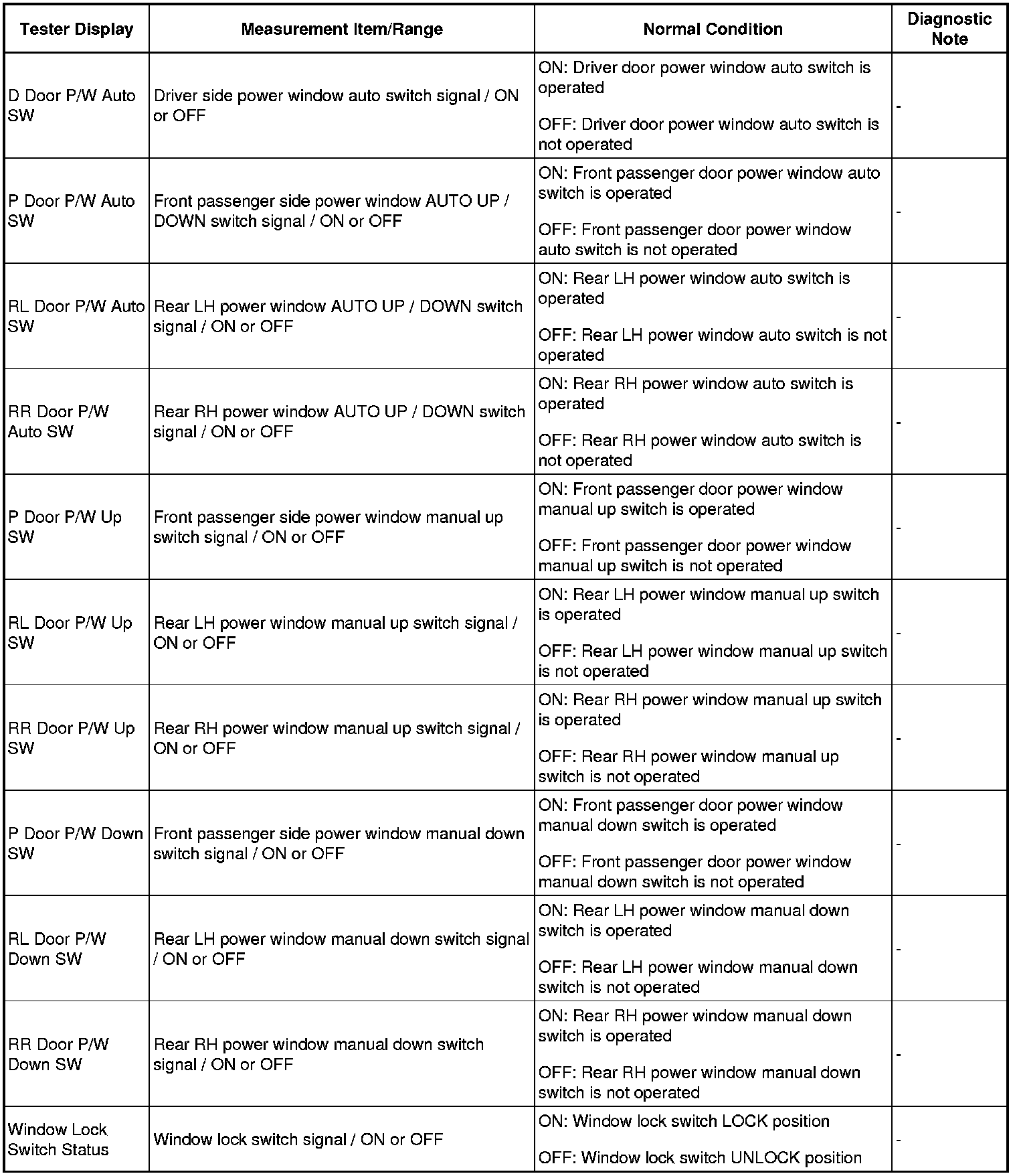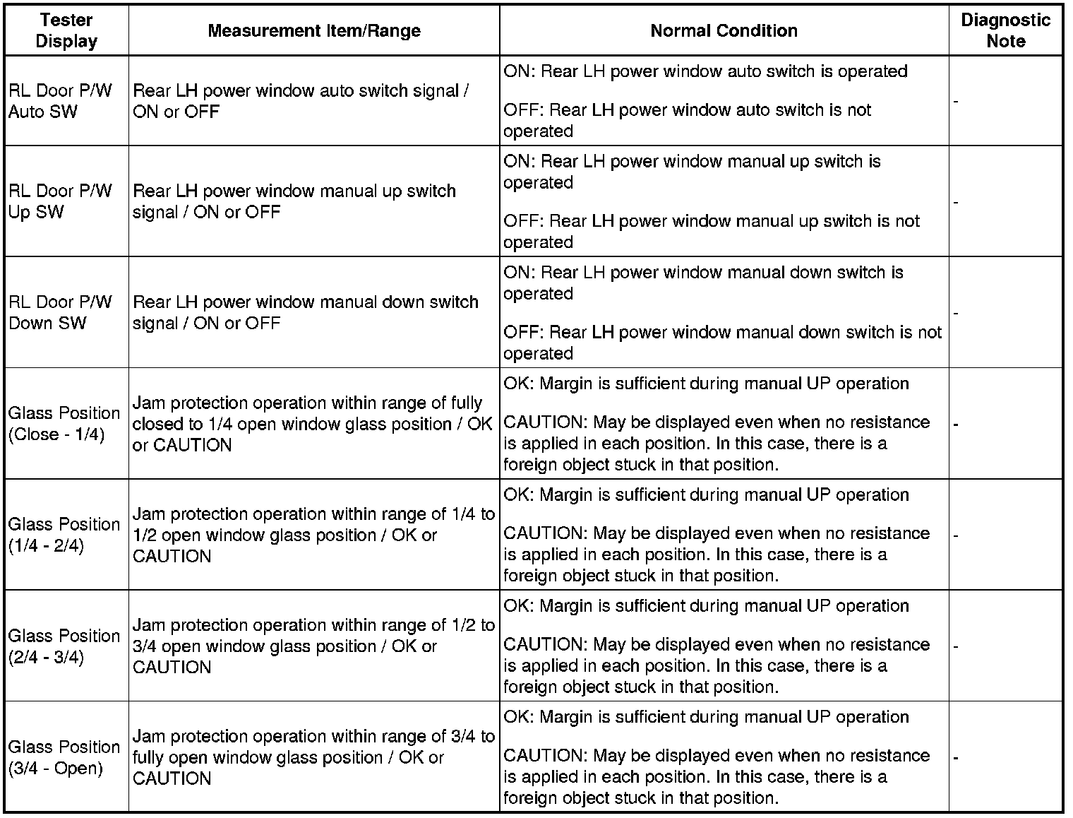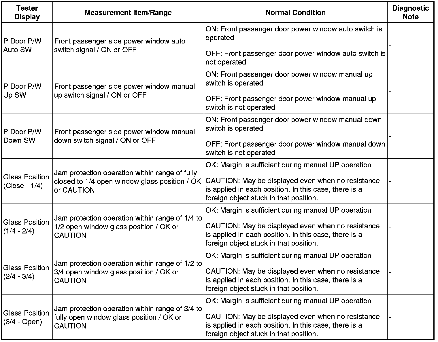 WINDSHIELD / WINDOWGLASS: POWER WINDOW CONTROL SYSTEM: DATA LIST / ACTIVE TEST