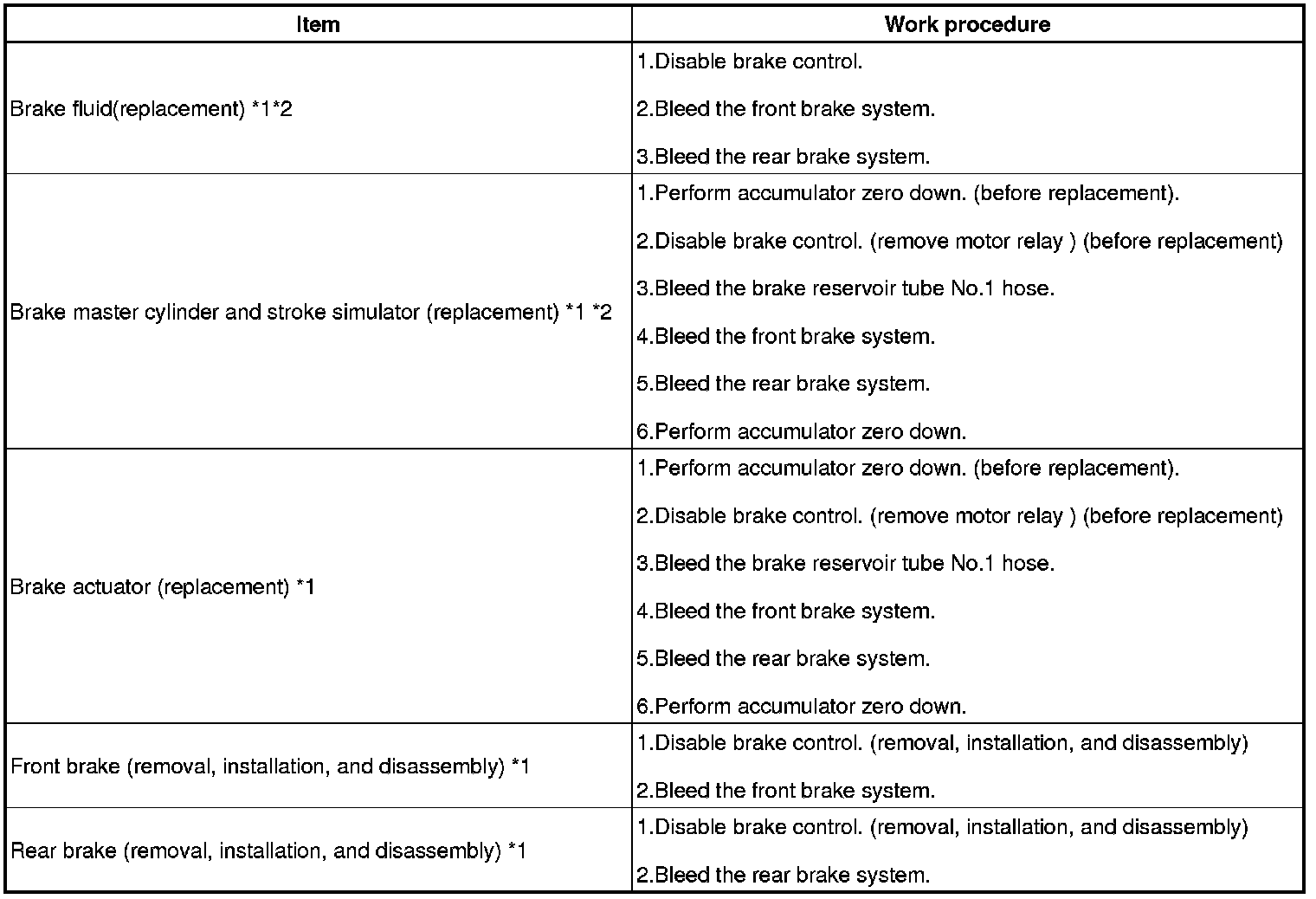 - *2 : If air enters the brake reservoir tube No.1 hose due to declined brake fluid level, be sure to bleed the brake reservoir tube No.1 hose.