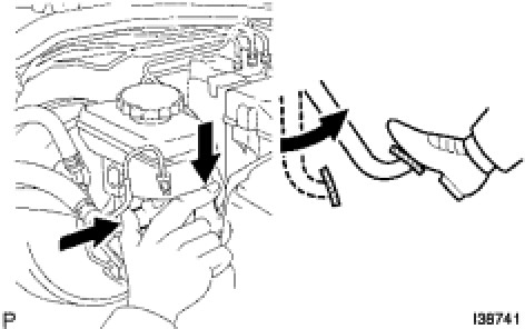 (a) Drain the brake fluid in the brake fluid reservoir tank near the MIN line.