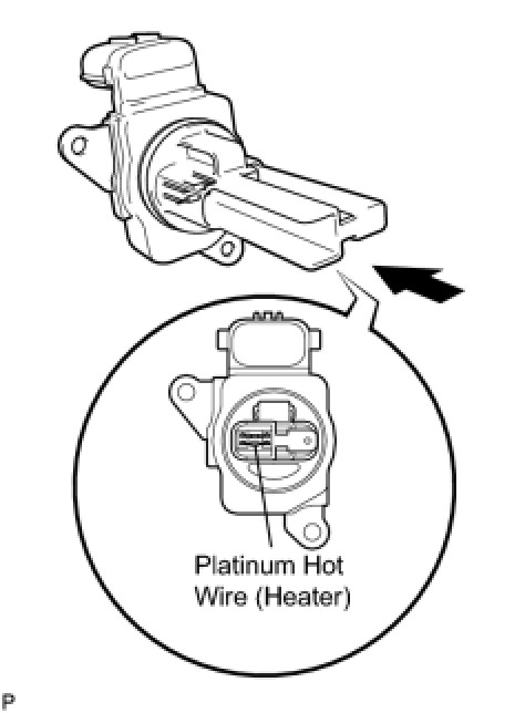 (a) Perform a visual check for any foreign matter on the platinum hot wire (heater) of the mass air flow meter shown in the illustration.