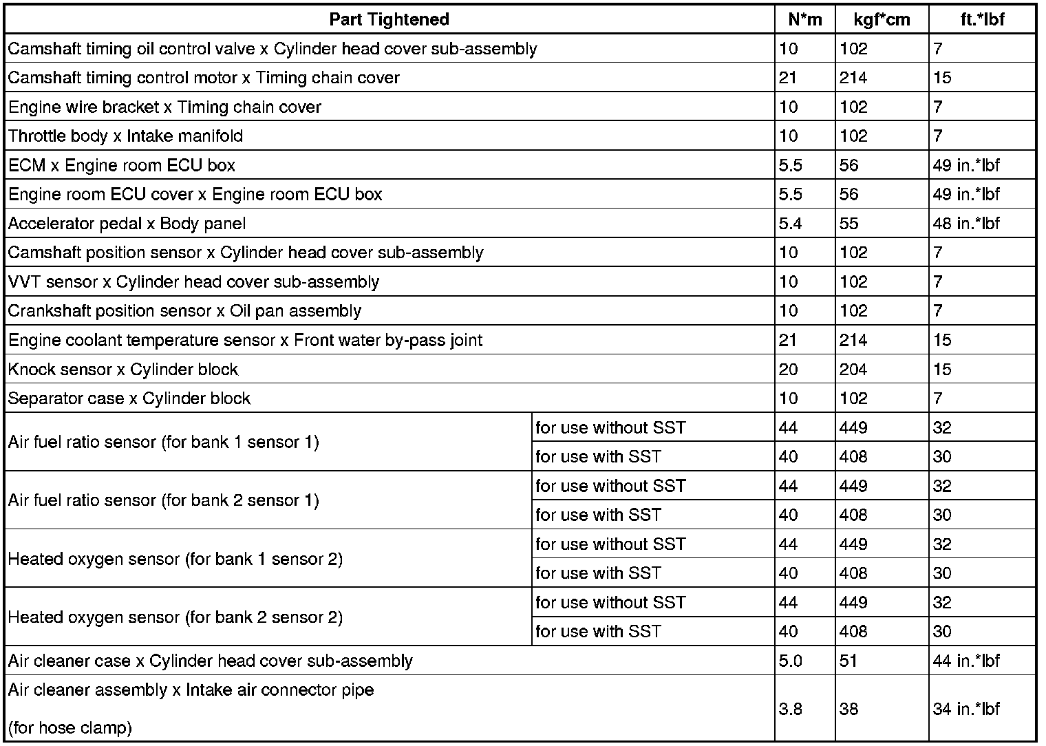 SERVICE SPECIFICATIONS: 1UR-FSE ENGINE CONTROL SYSTEM: TORQUE SPECIFICATIONS