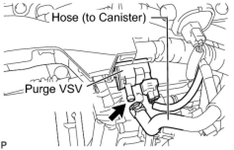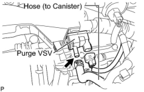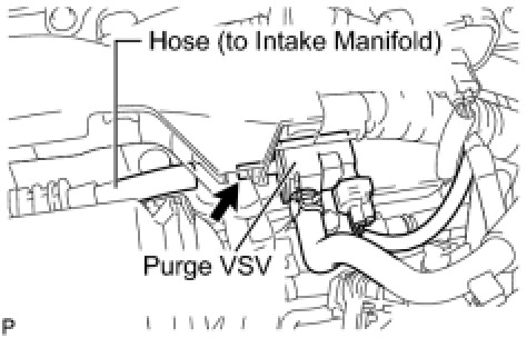 (a) Disconnect the hose (connected to the intake manifold) from the purge VSV.