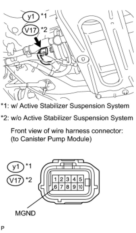 (c) Measure the resistance between MGND of the canister pump module connector and the body ground.