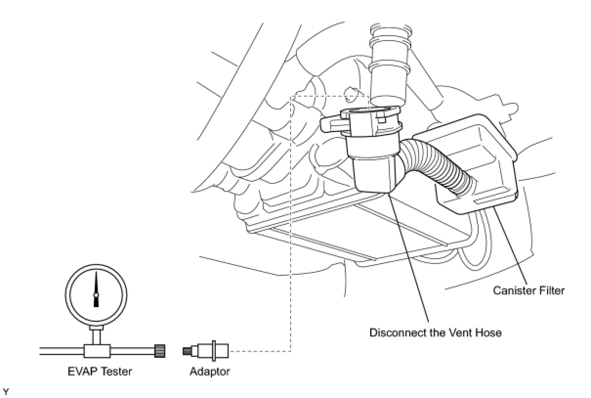 (b) Connect the EVAP pressure tester tool to the canister with the adaptor.