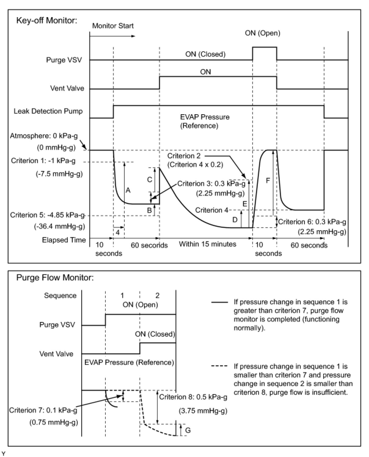(a) Wait until the EVAP pressure change is less than 0.1 kPa-g (0.75 mmHg-g) for 30 seconds.