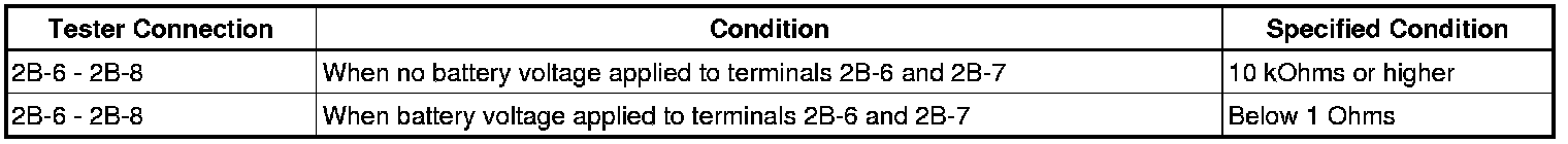 (1) Apply battery voltage to both terminals. Check that the pump operates.