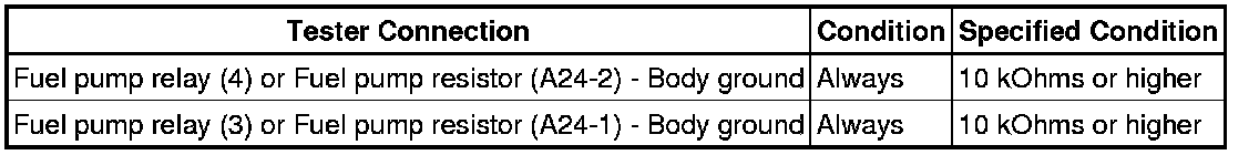 (b) Check the harness and the connectors between the fuel pump and body ground.