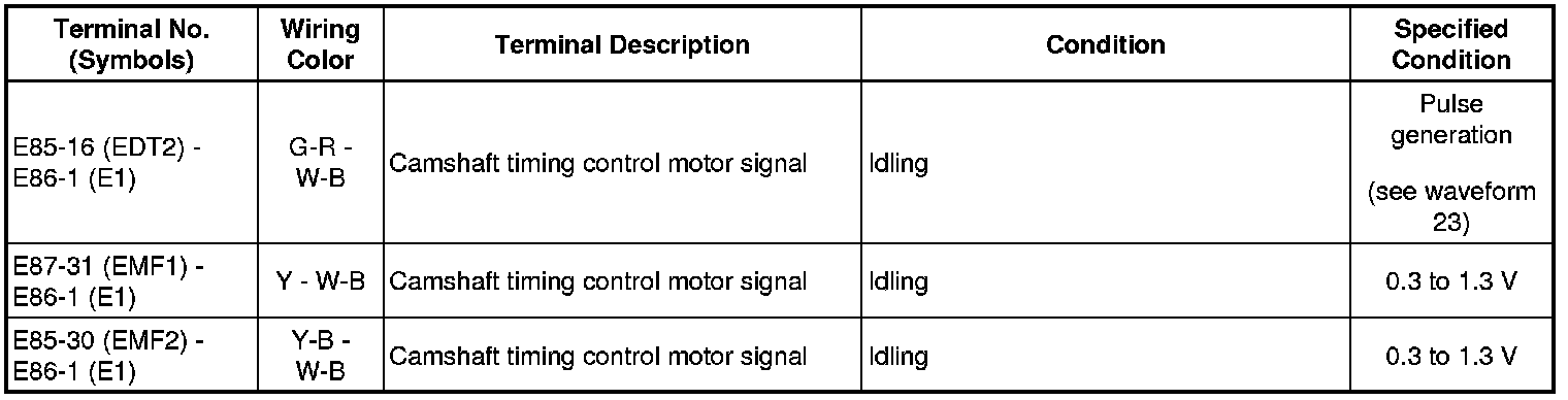 HINT: If the waveform is not similar to the illustration, check the waveform again after idling for 10 minutes or more.