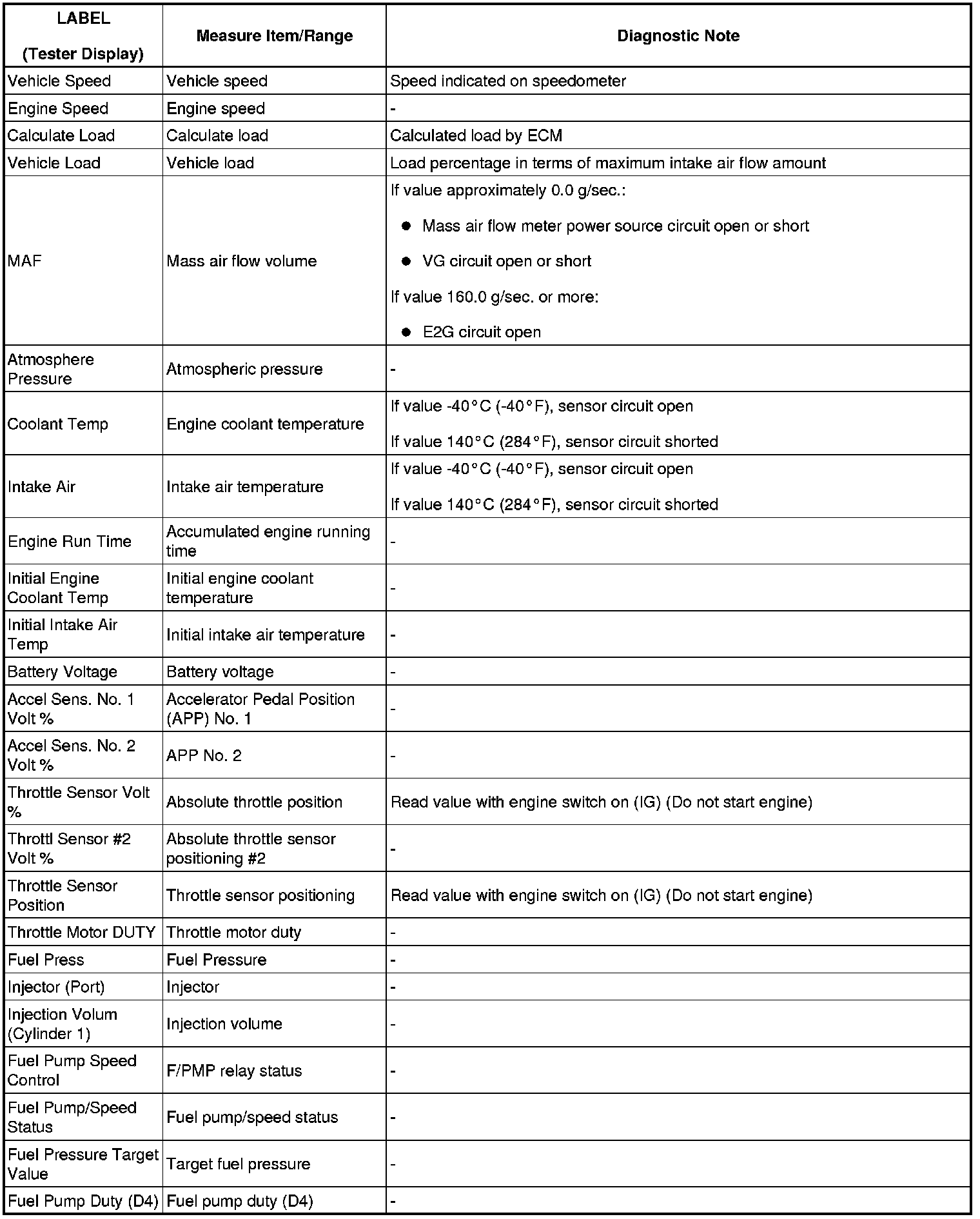 1UR-FSE ENGINE CONTROL SYSTEM: SFI SYSTEM: FREEZE FRAME DATA