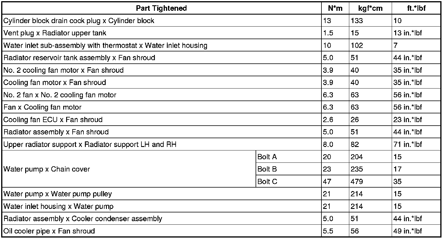 SERVICE SPECIFICATIONS: 1UR-FSE COOLING: TORQUE SPECIFICATIONS