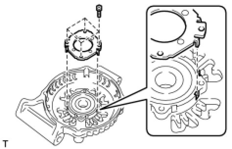 (f) With SST1-A and B attached to the generator, insert the pulley lock nut into the hexagon portion of SST2.