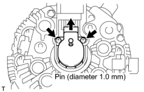 (a) Insert a pin (diameter 1.0 mm (0.039 in.)) into the generator brush holder assembly to secure the 2 brushes in place.