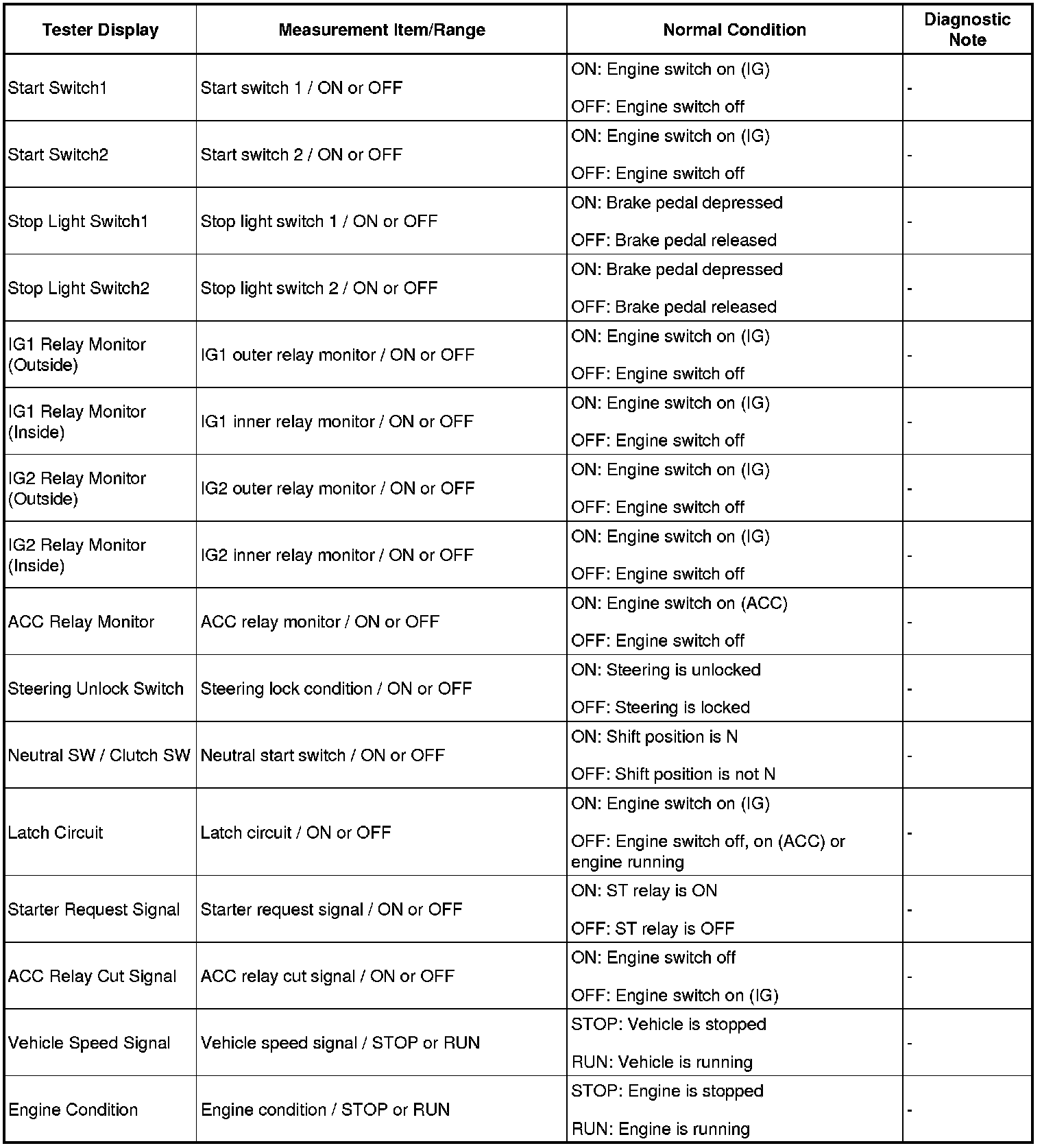 HINT: Using Techstream's Data List allows switch, sensor, actuator and other item values to be read without removing any parts. Reading the Data List relay in troubleshooting is one way to save time.