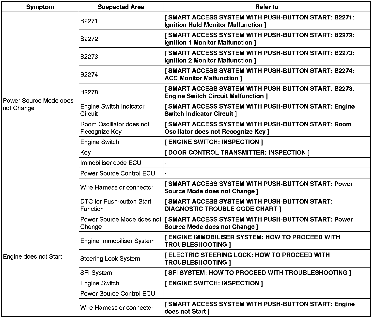 1UR-FSE STARTING: SMART ACCESS SYSTEM WITH PUSH-BUTTON START: PROBLEM SYMPTOMS TABLE