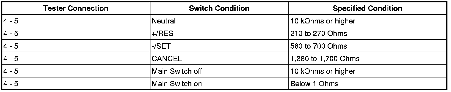 CRUISE CONTROL: CRUISE CONTROL SYSTEM: Cruise Control Switch Circuit
