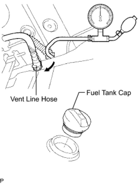 (c) Remove the fuel tank cap, and check that the pressure inside the tank drops.