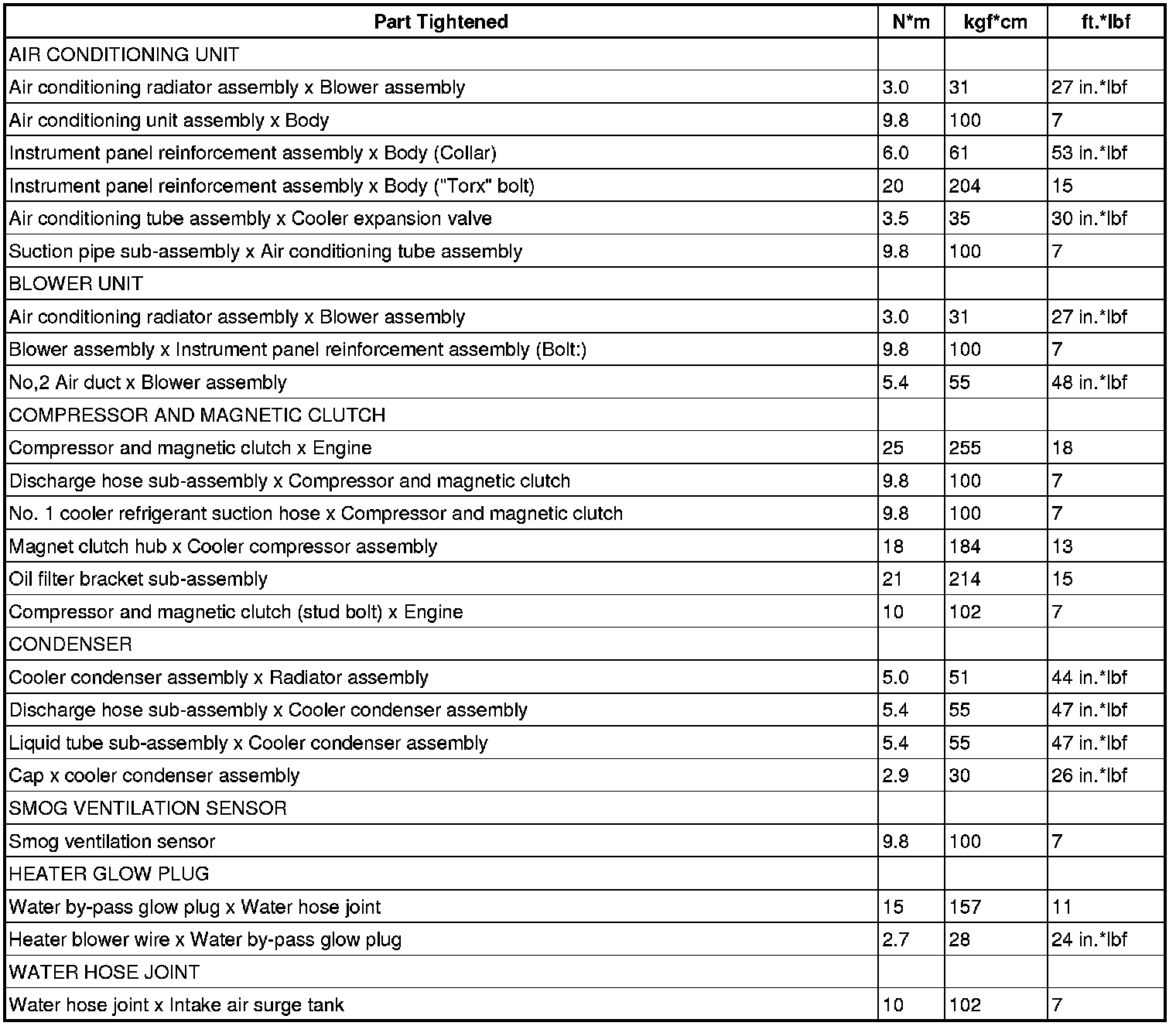 SERVICE SPECIFICATIONS: AIR CONDITIONING: TORQUE SPECIFICATIONS