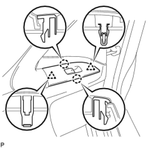 (b) Engage the 2 claws and 2 clips and install the rear power window regulator switch assembly with rear door armrest base panel.