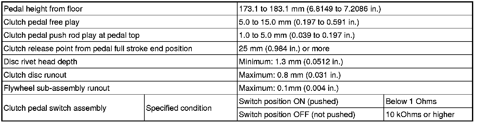 SERVICE SPECIFICATIONS: CLUTCH: SERVICE DATA