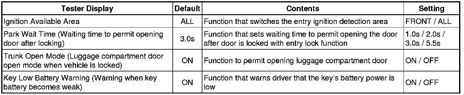 The procedure only changes the entry unlock mode of the smart access system with push-button start. It does not switch the unlocking of the wireless door lock control.