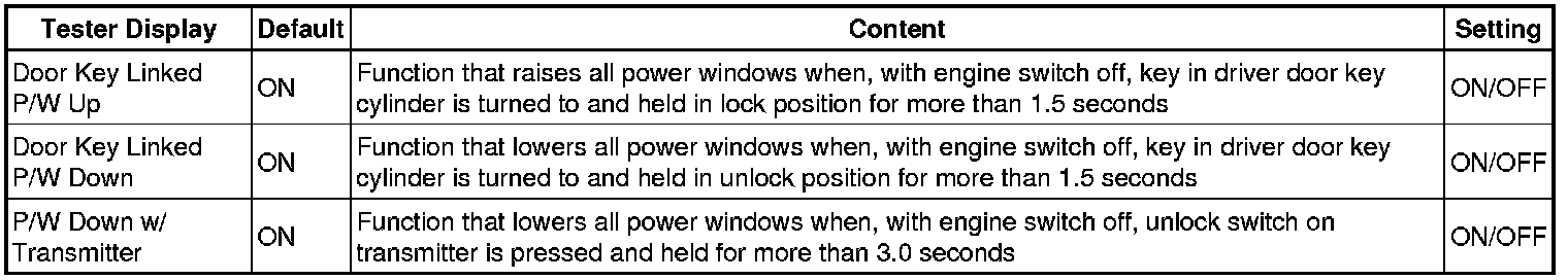 WINDSHIELD / WINDOWGLASS: POWER WINDOW CONTROL SYSTEM: CUSTOMIZE PARAMETERS