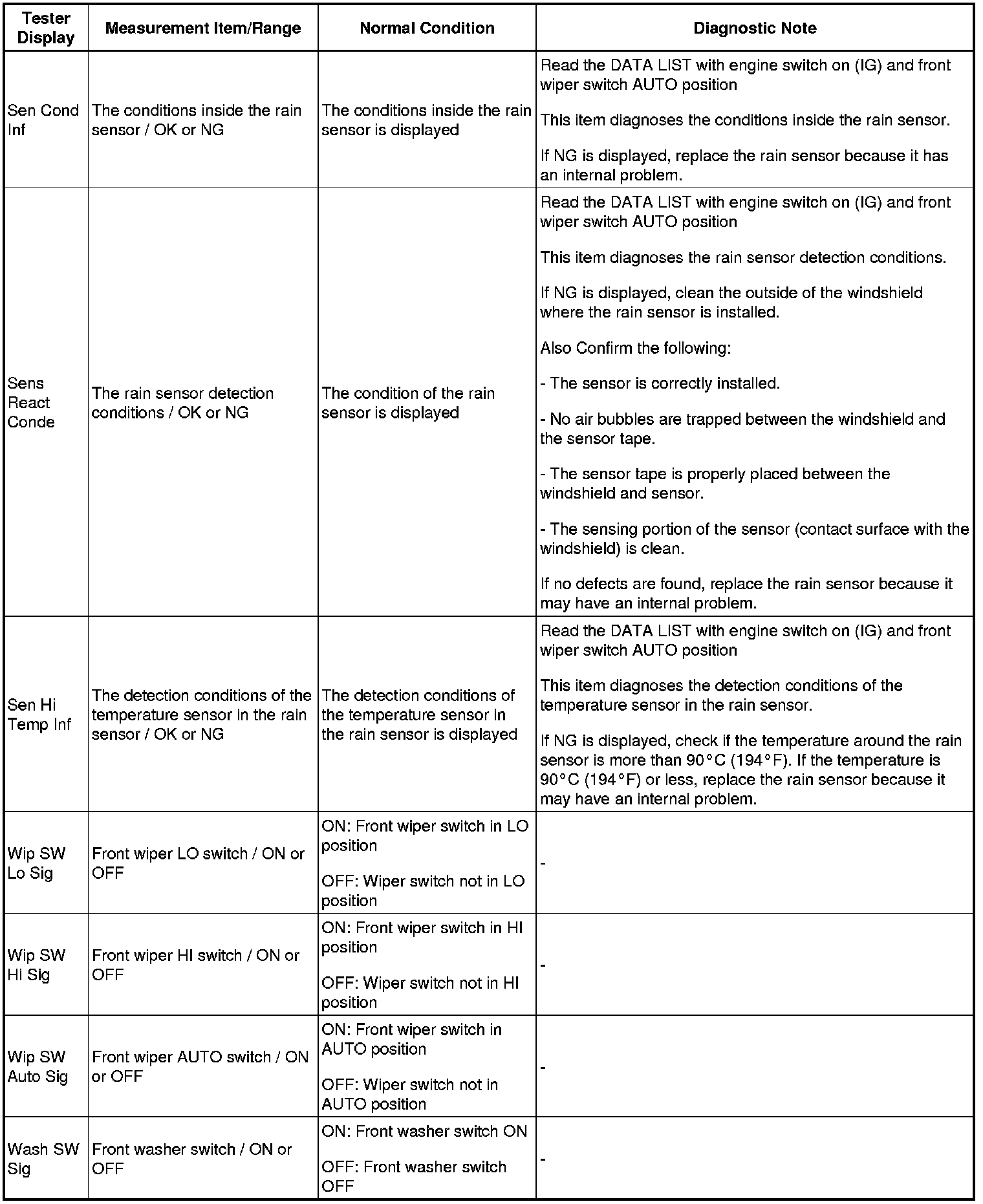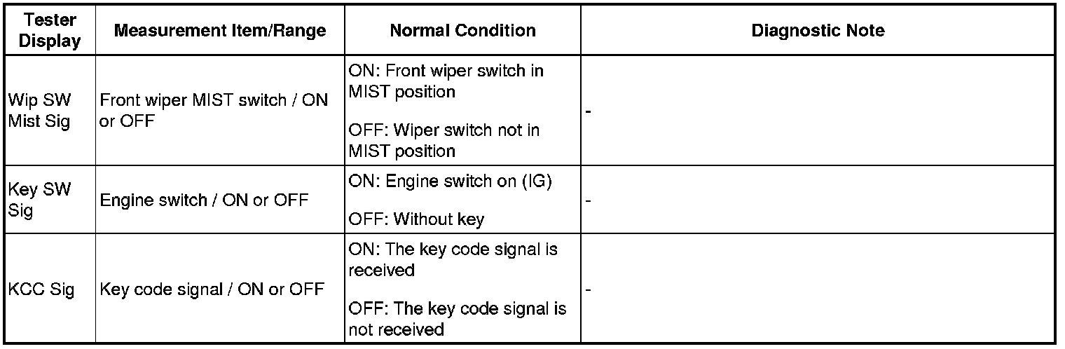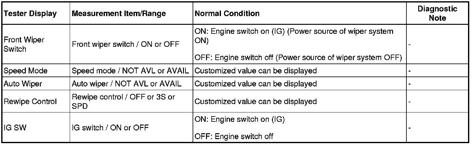 WIPER AND WASHER: WIPER AND WASHER SYSTEM: DATA LIST / ACTIVE TEST