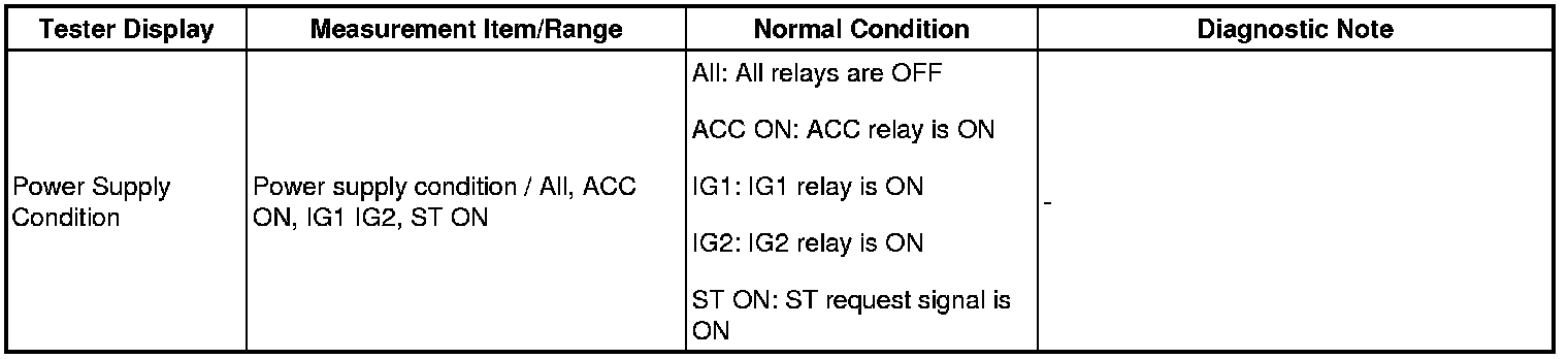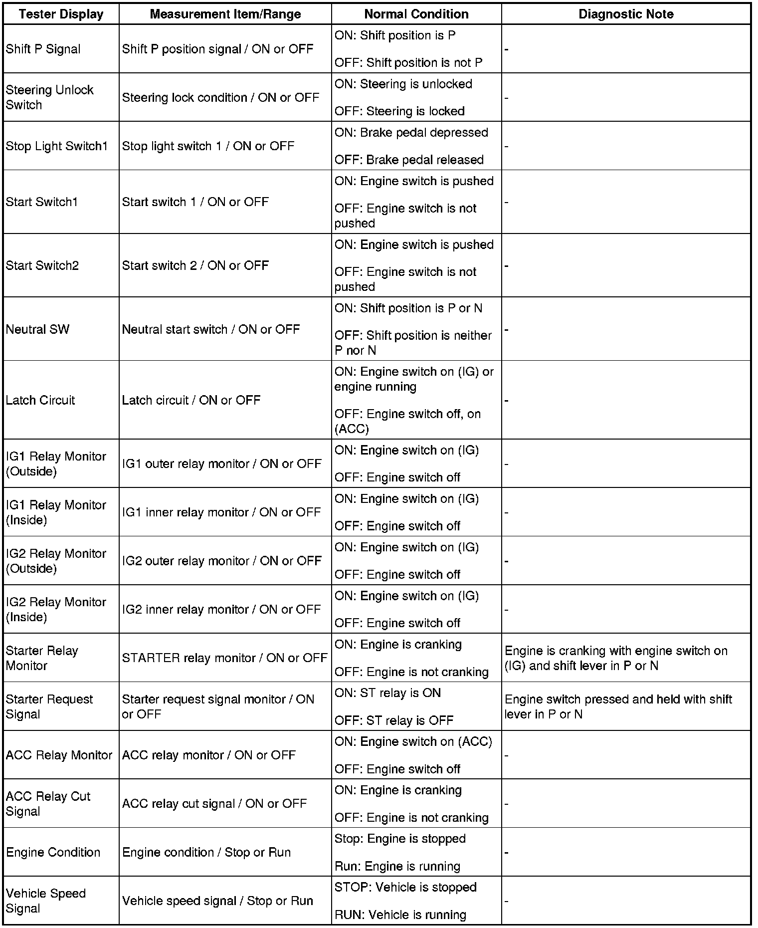 HINT: Using the Techstream to read the Data List allows the values or states of switches, sensors, actuators and other items to be read without removing any parts. This non-intrusive inspection can be very useful because intermittent conditions or signals may be discovered before parts or wiring is disturbed. Reading the Data List information early in troubleshooting is one way to save diagnostic time.