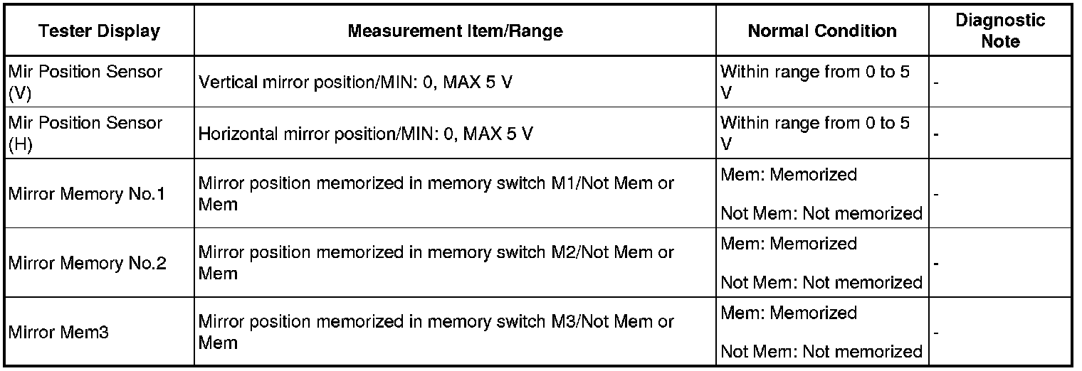 MIRROR (EXT): POWER MIRROR CONTROL SYSTEM: DATA LIST / ACTIVE TEST