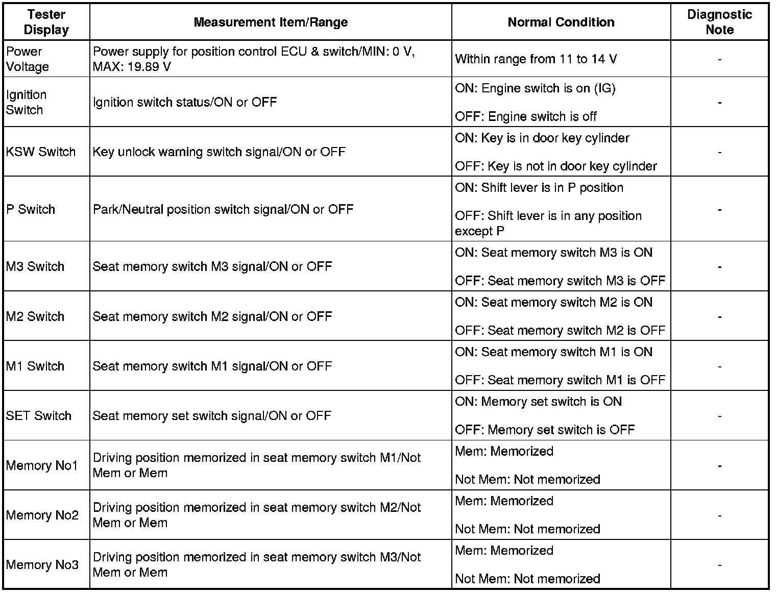 (e) Enter the following menus: Body Electrical / Driver Seat/Passenger Seat / Data List.