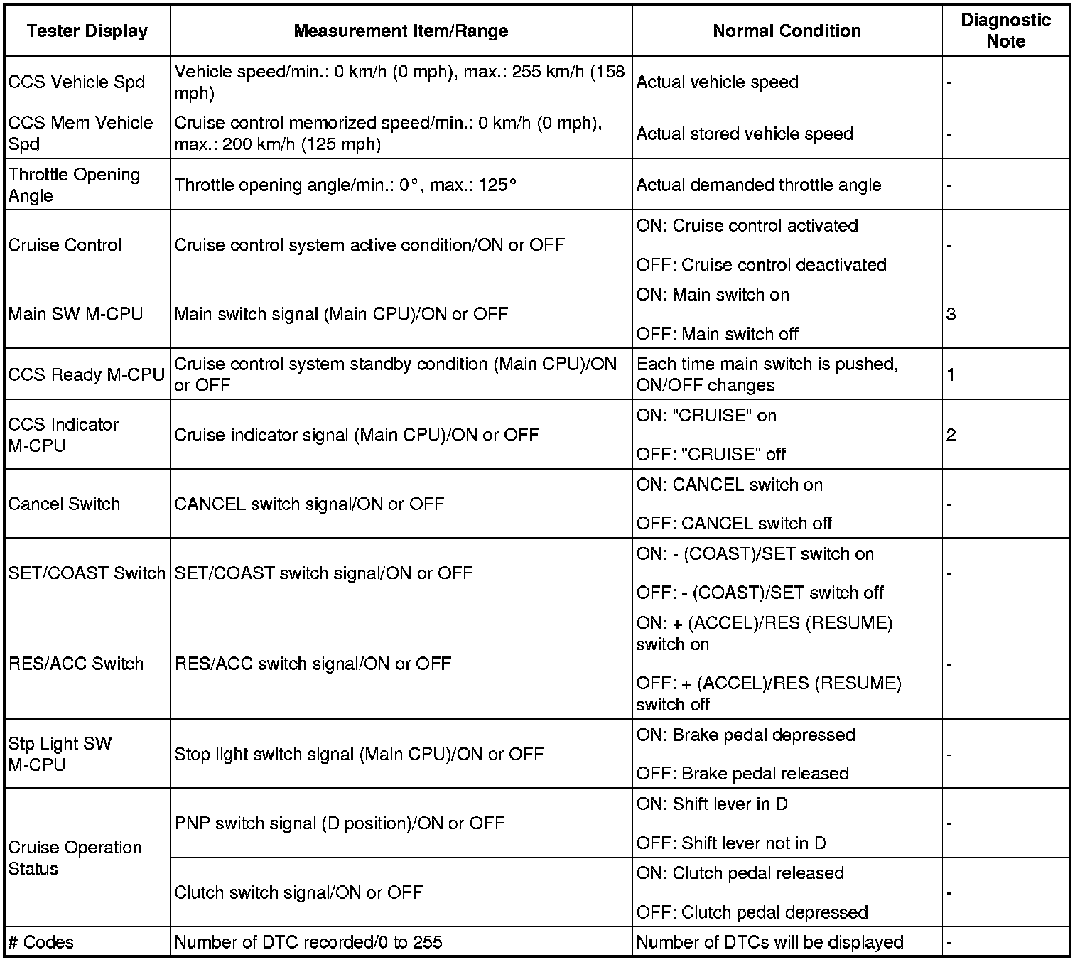 CRUISE CONTROL: CRUISE CONTROL SYSTEM: DATA LIST / ACTIVE TEST