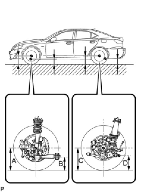 (a) Bounce the vehicle at the corners up and down to stabilize the suspension and inspect the vehicle height.