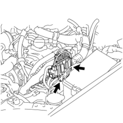 - Install the ECM on the ECM box with the label facing away from the engine.