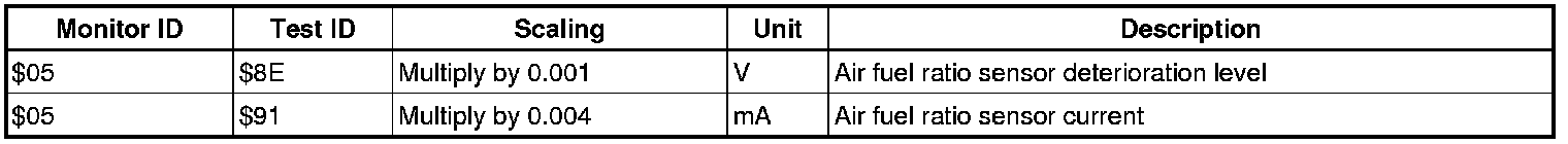 If you use a generic scan tool, multiply the value by the scaling value listed below.