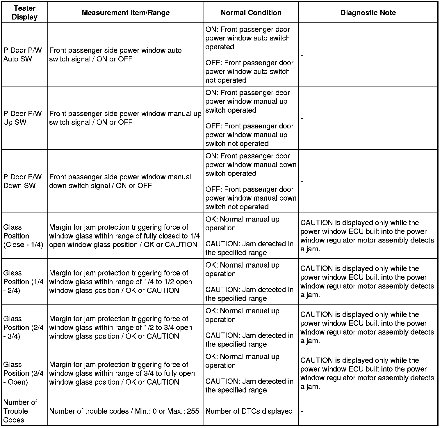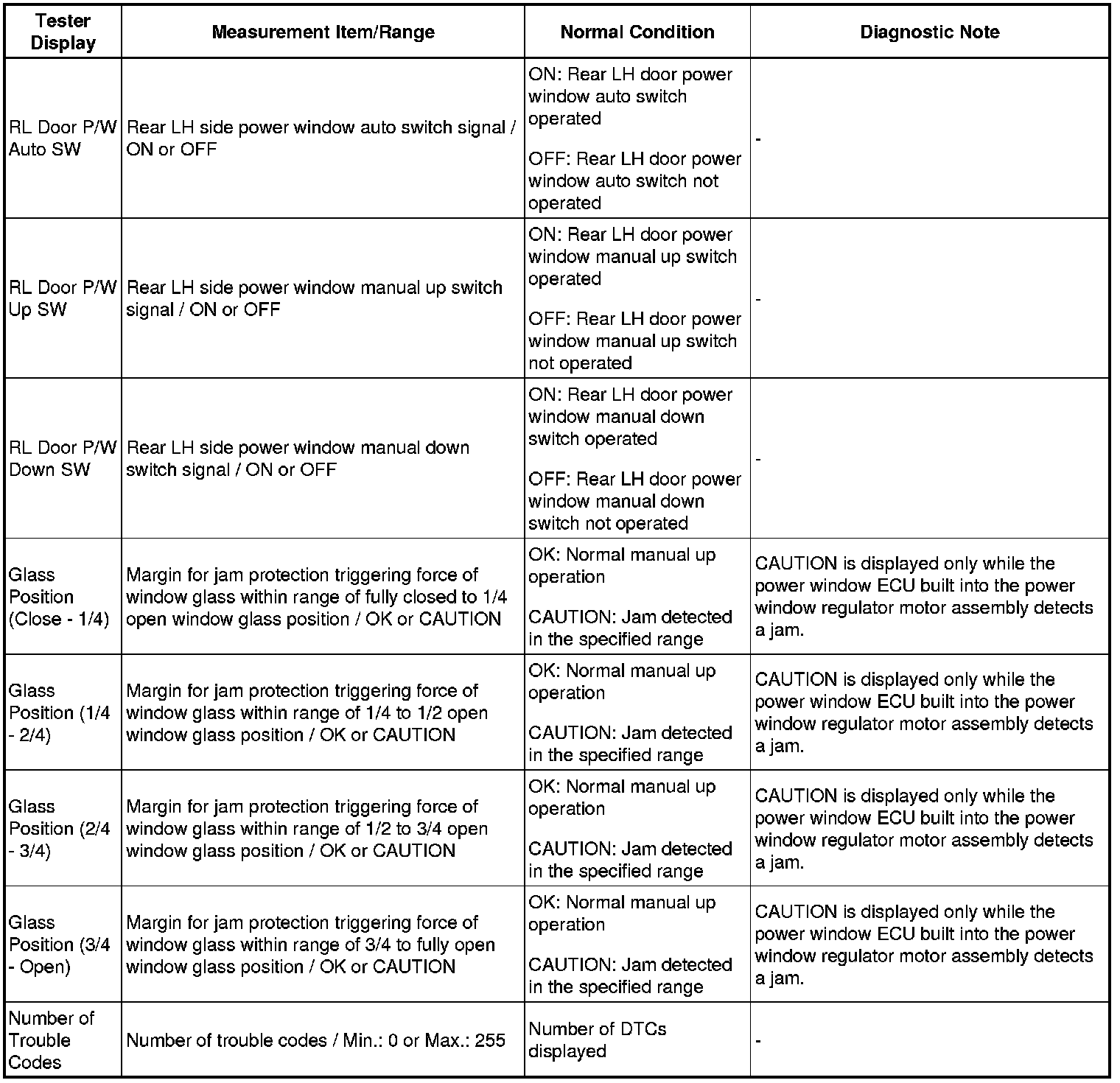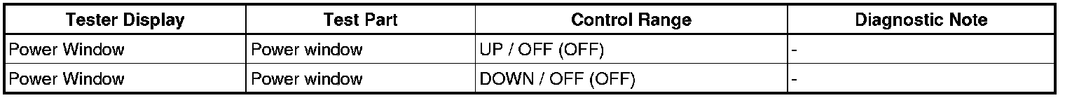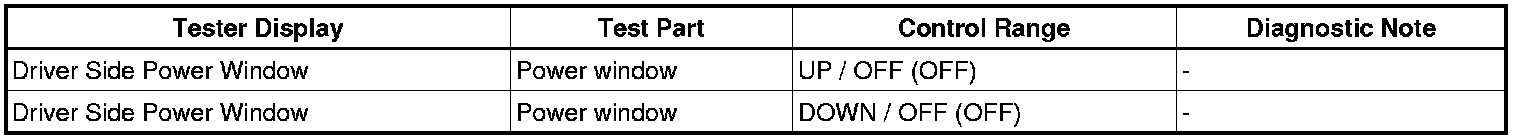 WINDOW / GLASS: POWER WINDOW CONTROL SYSTEM: DATA LIST / ACTIVE TEST